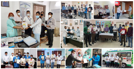 यह सम्मान कलेक्टर, जनप्रतिनिधि एवं मुख्य चिकित्सा एवं स्वास्थ्य अधिकारी के कर कमलों द्वारा दिया गया. संस्था की ओर से कोविड रिजर्व एम्बुलेंस में सेवा दे रह 108 क े र्मि यों को प्रशस्ति पत्र एवं मोमेंटो देकर सम्मानित करतेहुए उनके कार्य की प्रशंसा की गई. कोरोना वायरस के चलते वर्तमान समय में उत्पन्न हुई विकट परिस्थिति के बीच ईएमटी और पायलट पूरी लगन और निष्ठा से अपनी सेवाएं दे रह हैं. उनक े े इस सेवाभाव की जितनी भी प्रशंसा की जाए वह कम है. इस सम्मान ने उनके